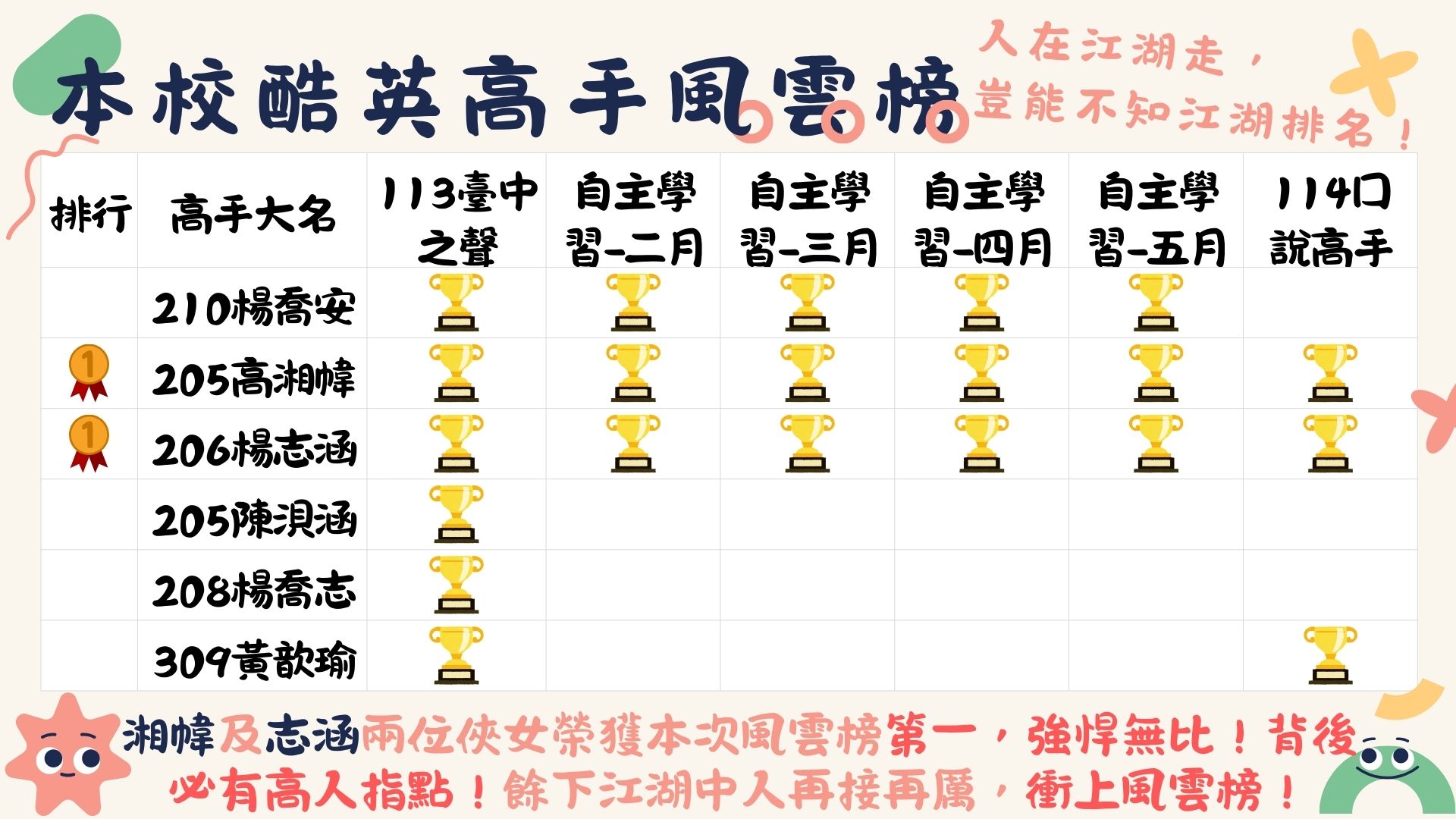 恭喜獲獎同學自主學習能力優秀!感謝老師平日悉心教導!